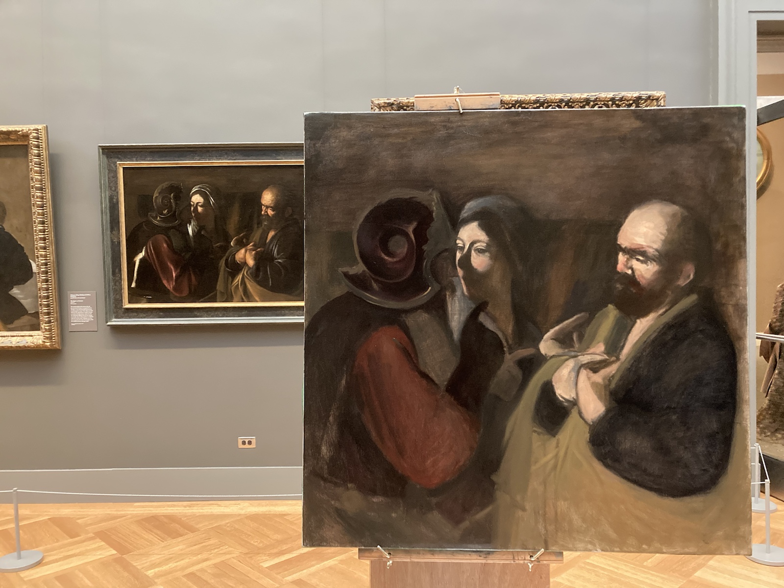 It is incredible how fast 3 hours passes by when painting. For the first half of the session, I worked on refining the portrait of Peter and the lady—this time paying special attention to the light hitting the original compared to my copy.