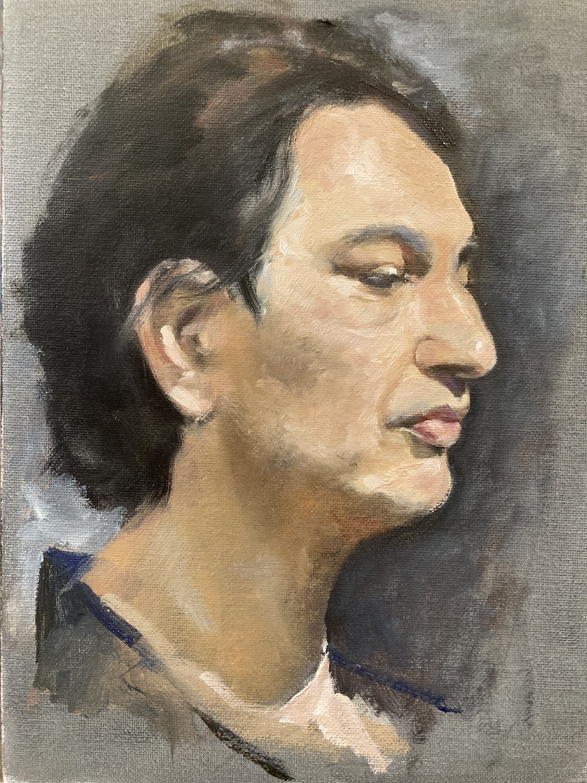 All the awkwardness and doubt disappears, however, when I am painting again, in front of a sitter, surrounded by pleasing smell of oil paint.